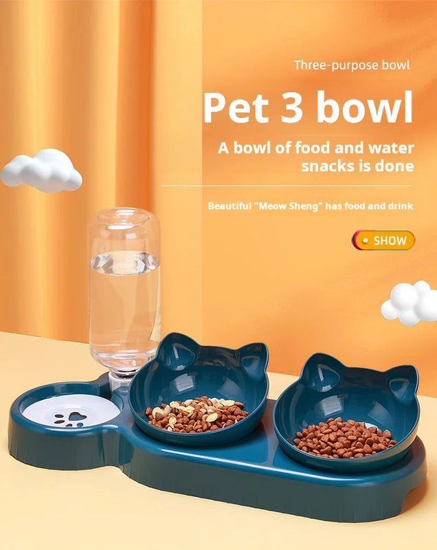 Revolutionize your pet's mealtime with the 3-in-1 Pet Bowl Set, an essential feeding station engineered for health, hydration, and convenience. This compact unit features two 15° tilted food bowls set at an ideal height to promote a natural eating posture, drastically reducing strain on your pet's neck, spine, and jaw—a huge benefit for cats and small dogs.